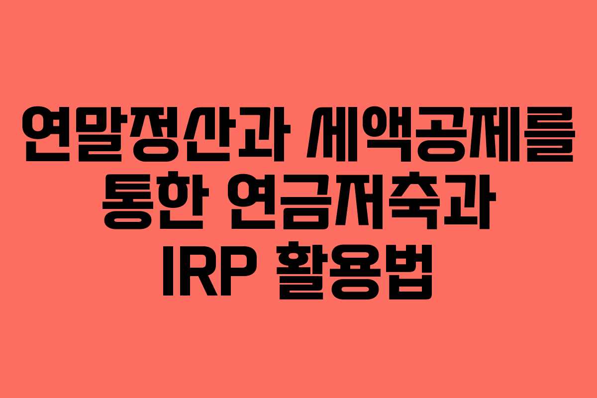연금저축과 IRP는 단순히 세액공제를 넘어 노후 준비와 자산 관리를 위한 중요한 도구입니다. 연말정산 시즌을 맞아 세액공제 혜택을 활용하며, 노후 대비를 위한 장기적 재정 계획도 함께 세워보시기 바랍니다.