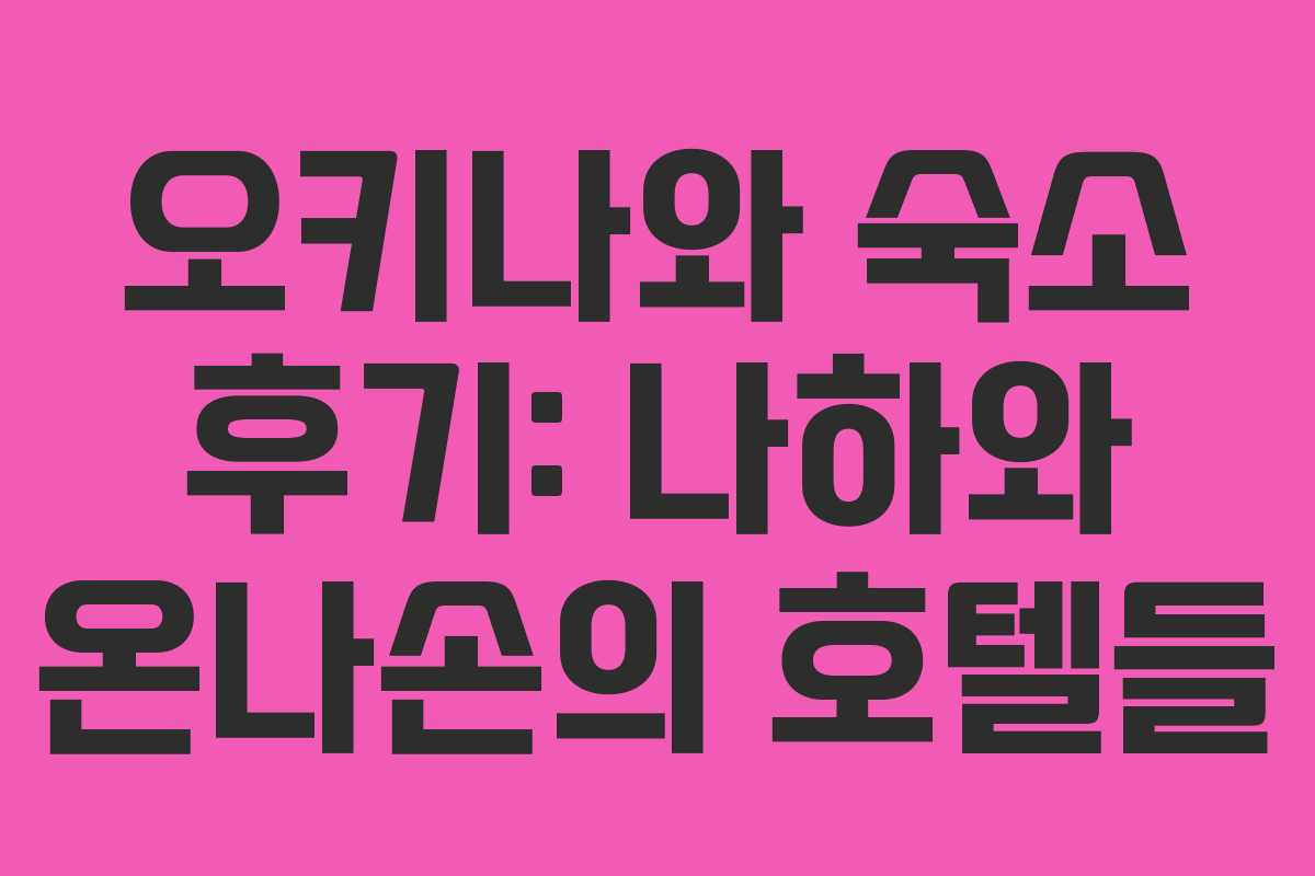 오키나와는 아름다운 관광지로 잘 알려져 있으며, 본섬에 위치한 나하(那覇)에는 다양한 숙소가 있습니다. 이 글에서는 나하와 온나손(恩納村)에서의 숙소 경험을 공유하고자 합니다.