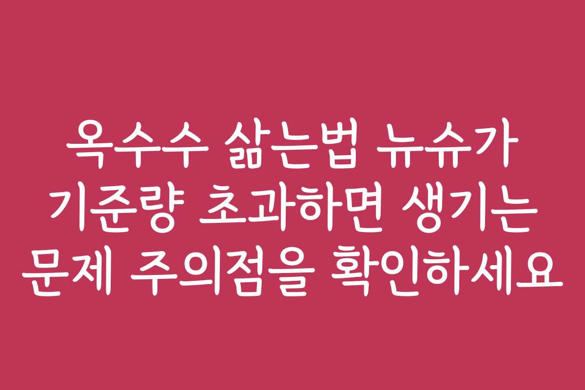 옥수수를 기가 막히게 삶는 방법, 알고 계신가요? 뉴슈가 기준량을 초과해 사용할 경우 어떤 문제가 발생할지 고민되시나요? 지금 바로 옥수수 삶는법과 뉴슈가 사용 시 주의해야 할 점을 확인하세요.