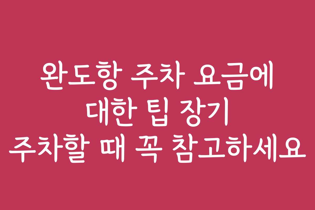 핵심 키워드: 완도항 주차 요금, 장기 주차, 주차 비용, 주차 서비스, 완도항 여행