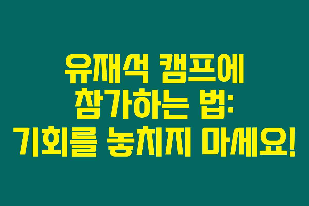 2025년 여름, 유재석 캠프가 여러분을 위한 특별한 기회를 제공합니다. 1박 2일 동안 유재석과 함께하는 이 캠핑 체험은 한국 거주 일반인이라면 누구나 지원할 수 있습니다. 아래를 읽어보시면 이 신청 방법과 함께해야 할 팁들에 대해 자세히 안내해 드릴게요.