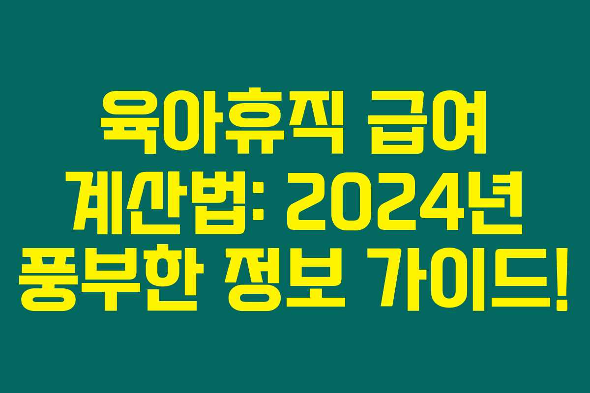 2. 육아휴직 급여 계산법: 어떻게 이루어지나요?