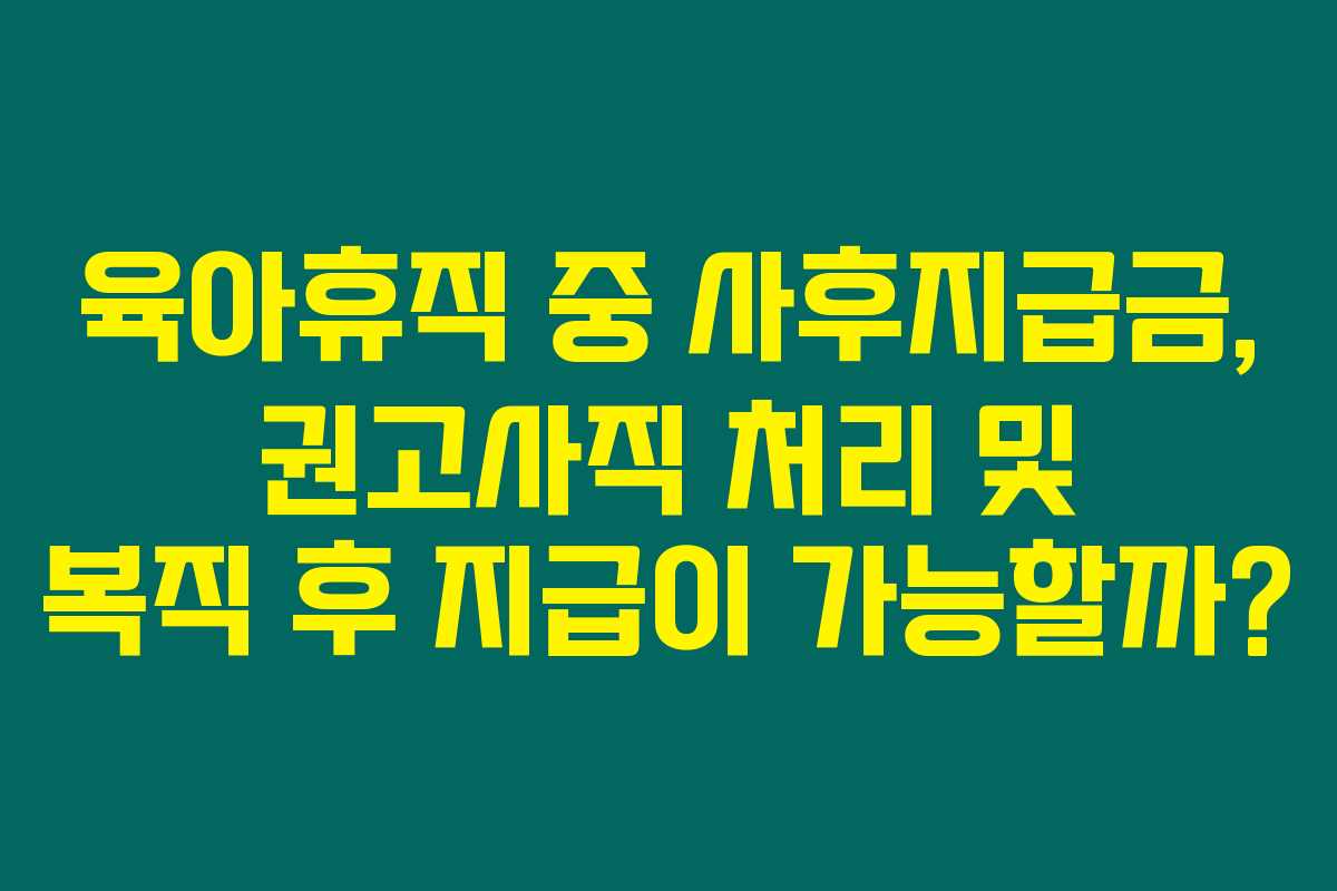 제가 직접 확인해본 결과, 육아휴직 후 사후지급금과 권고사직, 복직 과정에서의 지급 여부에 대해 알아보겠습니다. 내용은 육아휴직 급여에서 사후지급금의 의미, 퇴사 시 지급 여부 그리고 복직 후 상황을 종합적으로 설명합니다. 여러분에게 많은 도움이 되길 바랍니다.