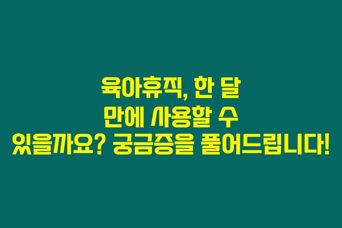 입사한지 한 달 이내에 육아휴직을 사용할 수 있을지에 대한 고민은 많은 부모님들이 겪는 고민이에요. 제가 직접 경험해본 결과로는, 육아휴직의 사용 조건이 생각보다 유연하다는 사실을 알게 되었답니다. 아래를 읽어보시면, 육아휴직에 대한 주요 요건과 급여, 신청 방법 등을 자세히 안내해 드리겠습니다.