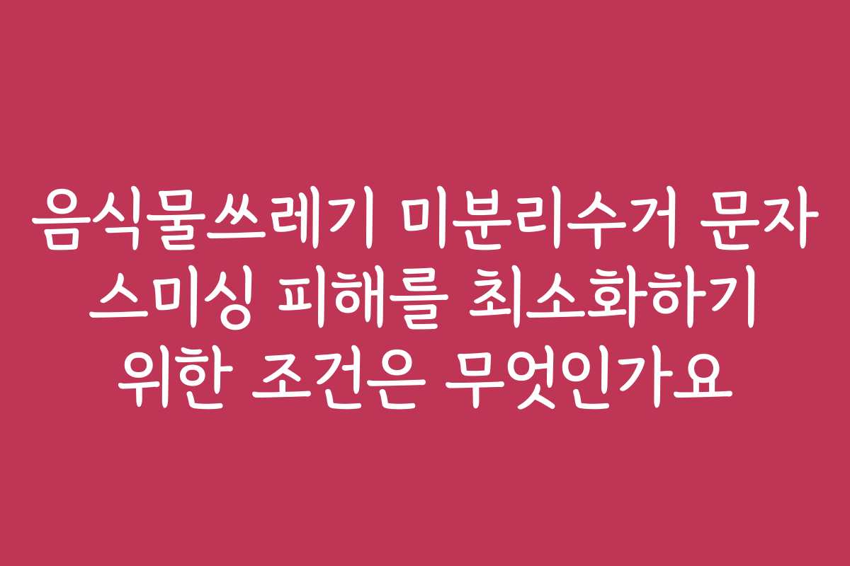 최근 음식물쓰레기 미분리수거로 인한 문자 스미싱 피해가 급증하고 있어, 이에 대한 대비가 필요합니다. 많은 사람들이 간과하는 부분이지만, 스미싱은 매우 심각한 범죄로 이어질 수 있습니다. 어떻게 하면 이러한 피해를 최소화할 수 있을까요? 아래를 읽어보시면 유용한 정보와 팁을 얻을 수 있을 것입니다.