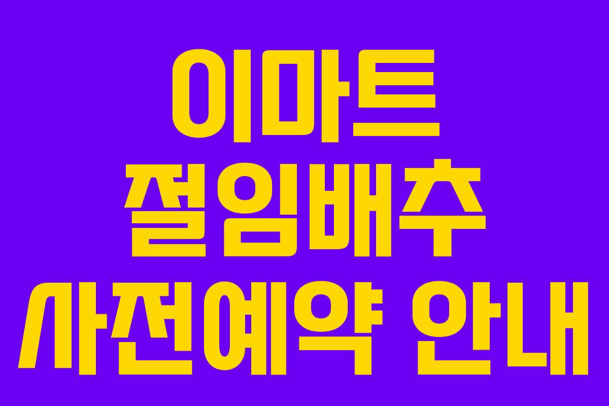 절임배추 사전예약은 가까운 이마트 매장을 직접 방문하여 고객만족센터를 통해 접수해야 합니다. 전화나 온라인 예약은 불가능하니, 꼭 매장을 방문하시기 바랍니다.