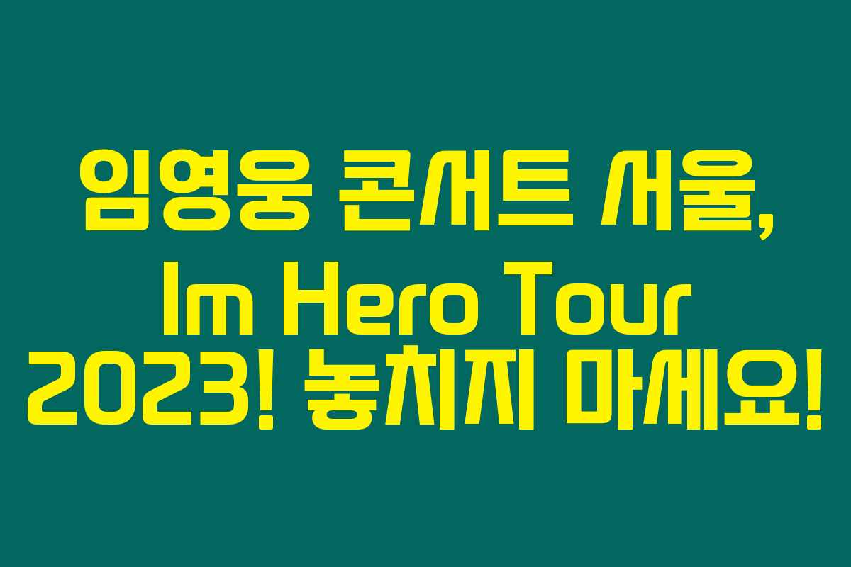 임영웅 콘서트를 기다리신 팬 여러분! 이 특별한 공연을 위해 서울에서 열리는 Im Hero Tour 2023의 일정과 티켓팅 정보를 반드시 확인해야 해요. 특히 티켓이 빠르게 마감되니 아래 내용을 자세히 찾아보시면 좋겠어요. 임영웅의 매력을 직접 느낄 수 있는 기회를 절대 놓치지 마세요!