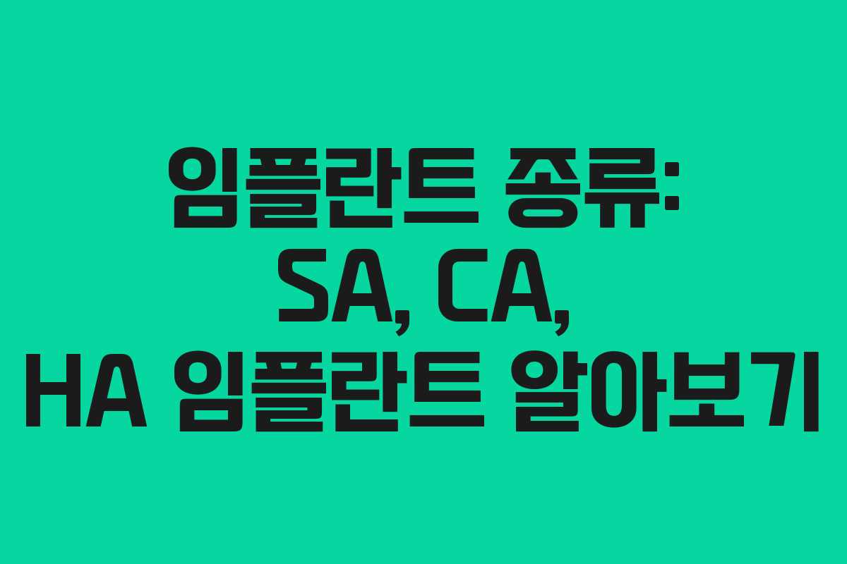 임플란트는 치아를 상실한 경우 인공적으로 이를 대체하는 중요한 치료 방법입니다. 이 글에서는 임플란트의 종류인 SA, CA, HA에 대해 자세히 알아보겠습니다.