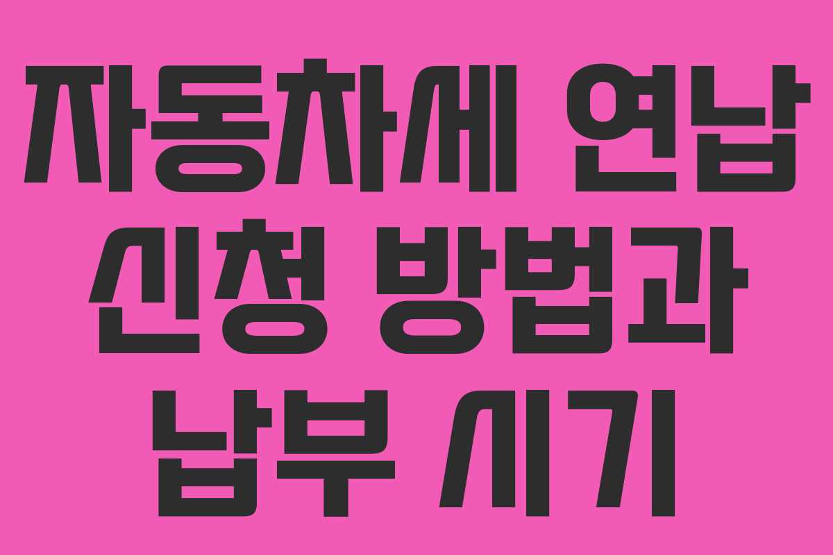 자동차세는 자동차 소유자에게 부과되는 세금으로, 소유 여부에 따라 정기적으로 납부해야 합니다. 이 글에서는 자동차세 연납 신청 기간과 납부 방법에 대해 자세히 알아보도록 하겠습니다.