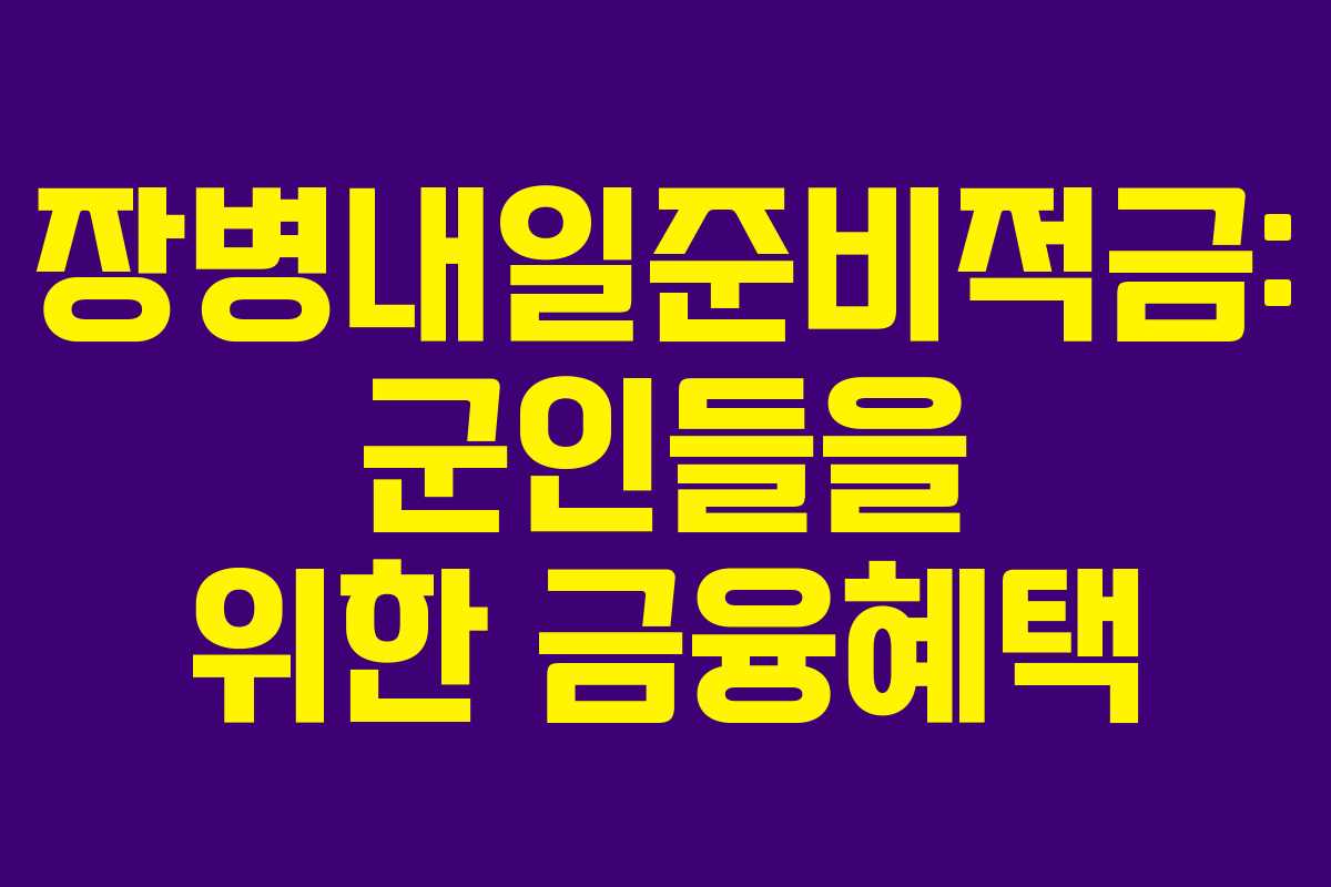 장병내일준비적금은 군인들에게만 주어진 특별한 혜택입니다. 꼭 챙겨서 전역 후에 필요한 자금을 마련하시기 바랍니다.