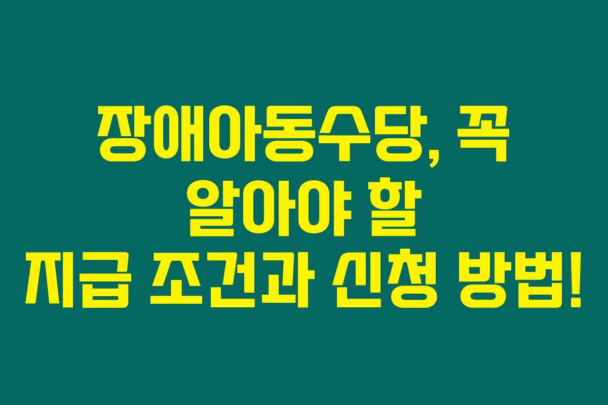 제가 직접 리서치한 바로는, 장애아동을 둔 부모님들께 경제적 부담을 덜기 위해 마련된 장애아동수당에 대한 정보가 매우 중요합니다. 이 글에서는 장애아동수당의 지급 대상, 조건, 신청 방법, 지급일에 대해 자세하게 설명할 예정입니다. 아래를 읽어보시면 이 중요한 지원에 대해 더 깊이 이해하실 수 있을 거예요.