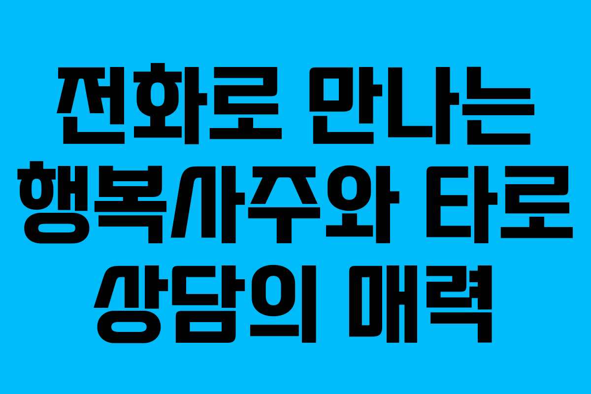 전화사주와 타로 상담은 개인의 삶에 대한 깊은 이해를 제공하며, 마음의 안정을 찾는 데 도움을 줍니다. 비대면 상담의 매력을 살려 편안한 마음으로 상담을 받아보시길 추천합니다.