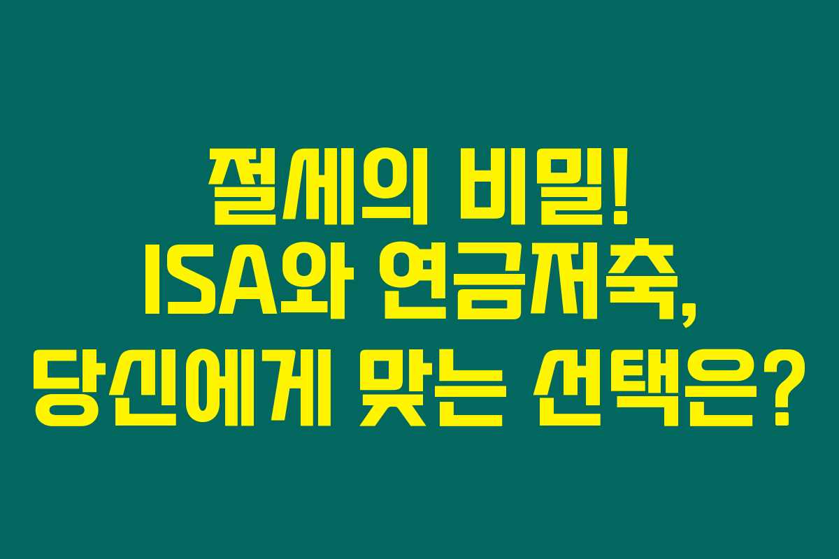 제가 직접 체크해본 바로는 재테크 전략에서 중요한 두 가지 절세 상품에 대해 알아볼 필요가 있습니다. 바로 ISA(개인종합자산관리계좌)와 연금저축계좌인데요. 두 계좌 모두 절세 혜택이 있지만, 자산 관리 방식과 제공 혜택이 다르기 때문에 자신의 상황에 맞는 상품을 선택하는 것이 중요합니다. 아래를 읽어보시면 세액공제, 세금 환급, 연금 전환 가능 여부와 같은 측면에서 두 계좌의 차이점을 알아보고, 어떤 선택이 유리한지 가늠해볼 수 있을 거예요.