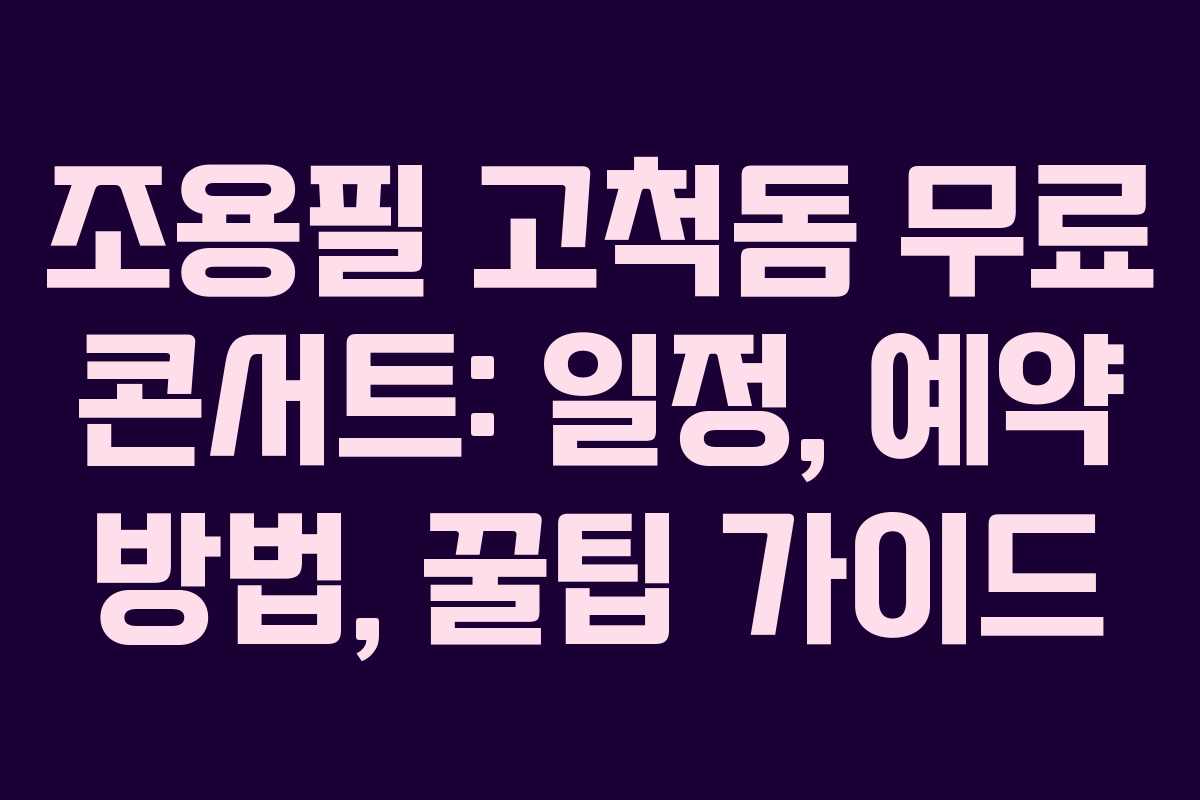 조용필의 고척 스카이돔 무료 콘서트는 대한민국 가요계의 전설을 만날 수 있는 특별한 기회입니다. 이번 공연은 광복 80주년을 기념하여 전석 무료로 개최되며, 많은 팬들의 기대를 모으고 있습니다. 이 글에서는 콘서트의 일정 및 예약 방법, 공연장 정보 등을 자세히 안내해 드립니다.