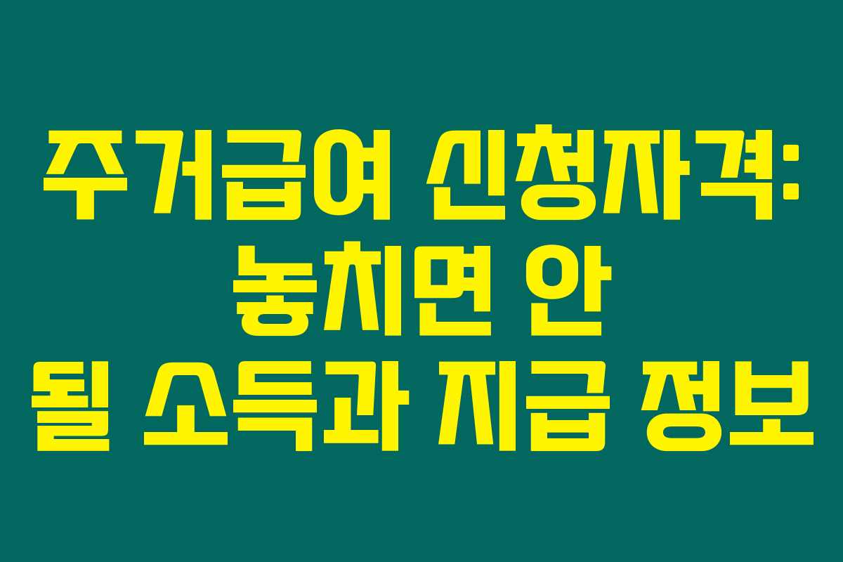 주거급여 신청자격: 놓치면 안 될 소득과 지급 정보