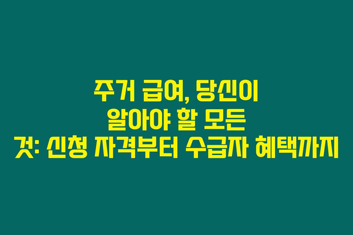 주거 급여 지원 금액 및 수급자 혜택