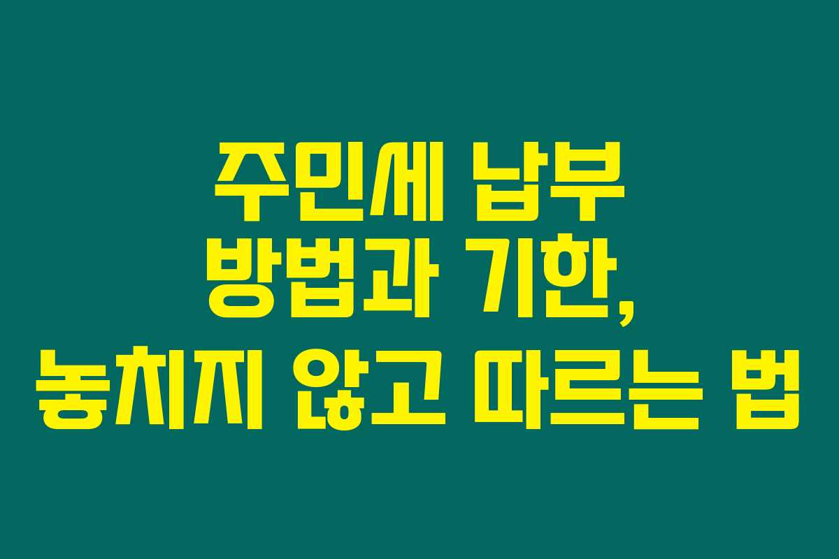 주민세를 놓치고 납부 기한을 지나가면 곤란하죠. 주민세를 납부해야 하는 기한과 방법에 대해 자세히 설명할게요. 혹시 주민세에 대해 궁금한 점이나 알아야 할 점이 있다면 아래를 읽어보시면 많은 도움이 될 거예요.