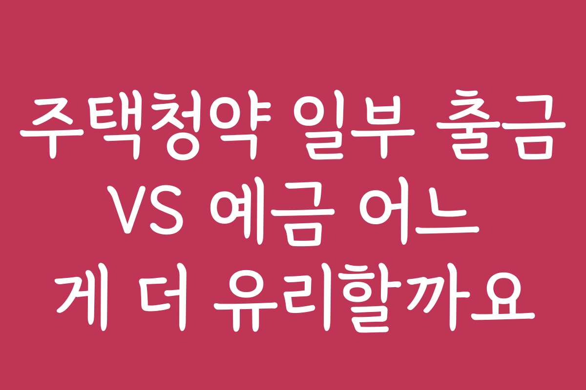 주택청약 일부 출금과 예금, 어떤 선택이 더 유리할까요?