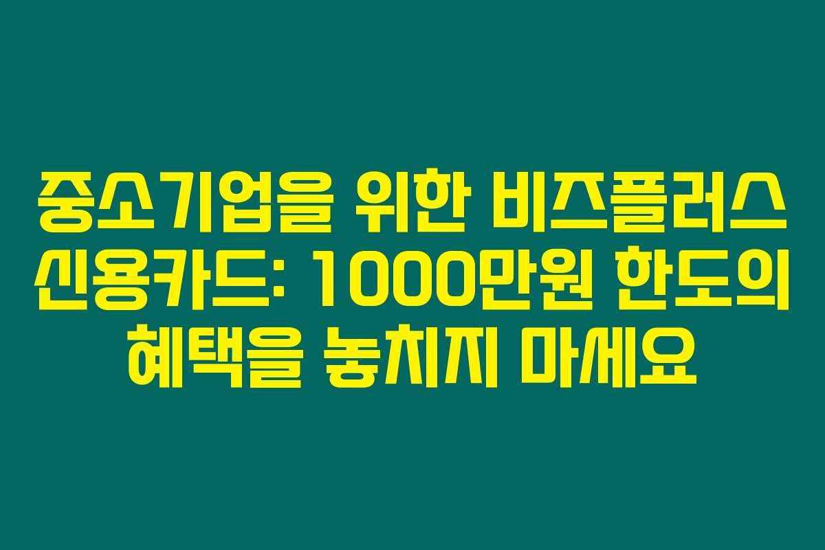 비즈플러스 신용카드는 중소기업과 소상공인에게 정말 중요한 재정 지원 툴로 자리잡을 것 같아요. 이렇게 좋은 기회를 최대한 활용해서 사업 운영에 도움을 받는 것이 좋겠죠? 여러분도 꼭 신청해보세요!