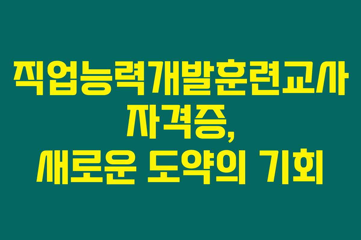 직업능력 개발훈련교사 자격증에 대한 정보가 여러분께 유익하길 바라며, 이 자격증을 통해 새로운 기회를 찾으시기를 바랍니다.