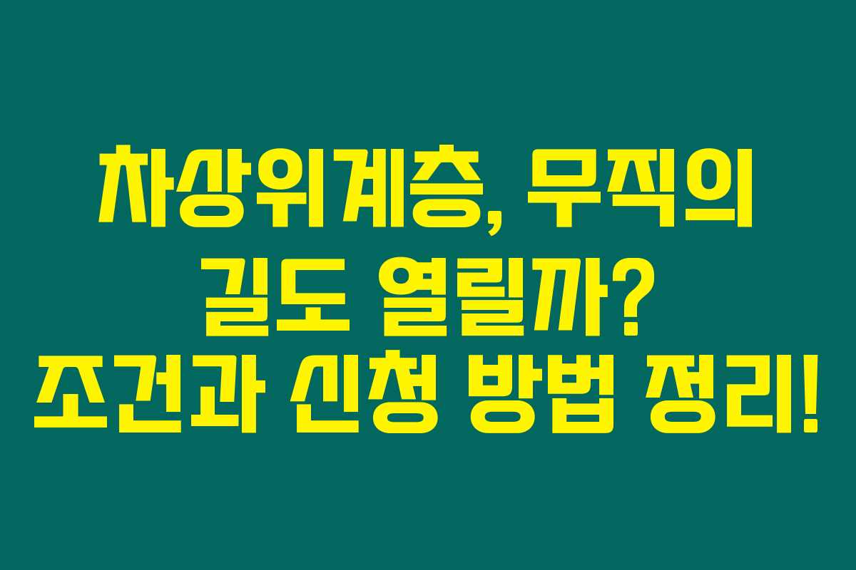 무직 상태에서 차상위계층으로 선정되기 위해서는 몇 가지 조건을 충족해야 합니다. 주요 조건은 다음과 같습니다: