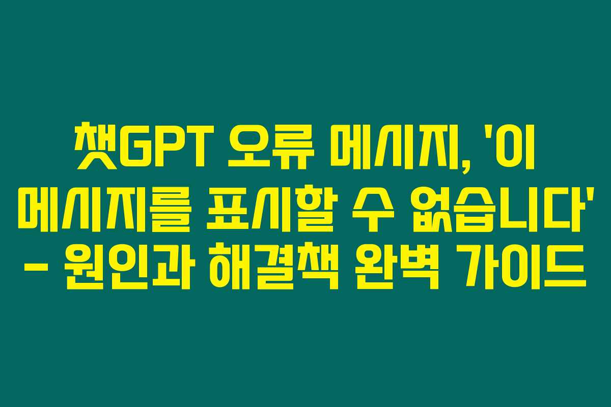 챗GPT 사용 중 “이 메시지를 표시할 수 없습니다” 오류가 발생하는 이유와 해결 방법에 대해 제가 직접 경험해본 결과를 바탕으로 상세히 안내해 드리겠습니다. 이 글에서는 이 오류에 대한 배경, 원인, 그리고 단계별 해결 방법을 정리해 볼게요.