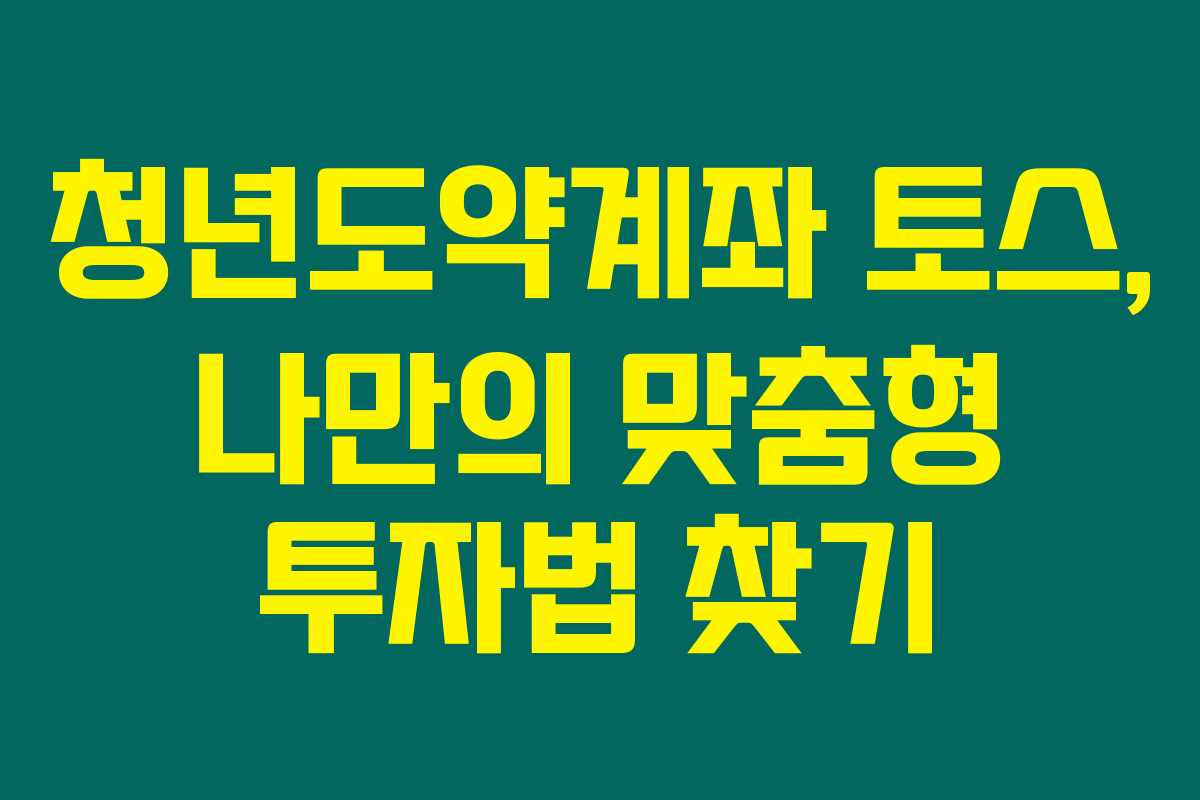 청년도약계좌 토스를 활용한 나만의 맞춤형 투자법을 찾아 기쁘네요! 다양한 경험과 지식을 바탕으로, 여러분도 성공적인 투자를 이루시길 바랍니다.