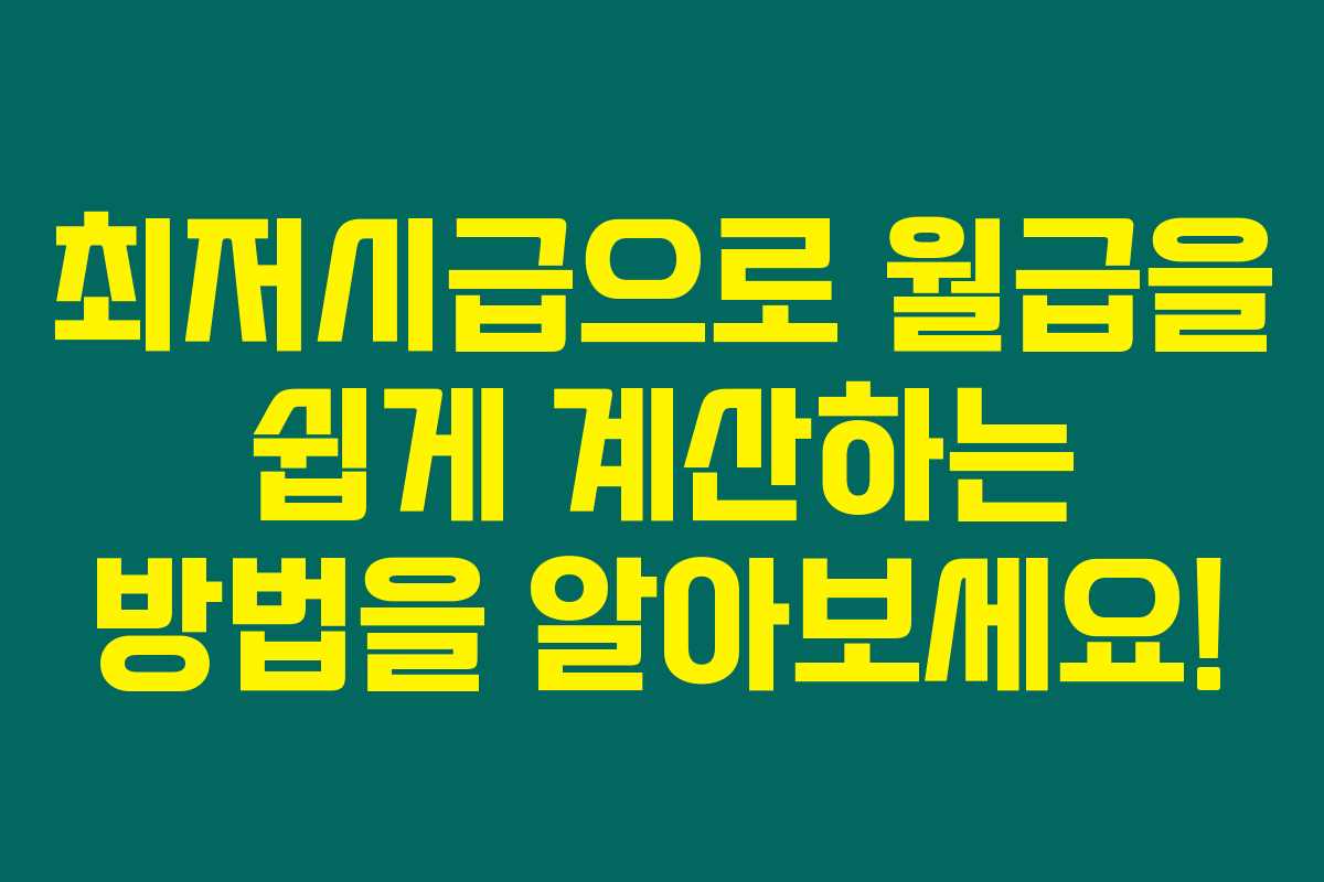 최저시급으로 월급을 계산하는 방법은 주 40시간 근무 기준으로 하고, 주휴수당도 포함해야 해요.