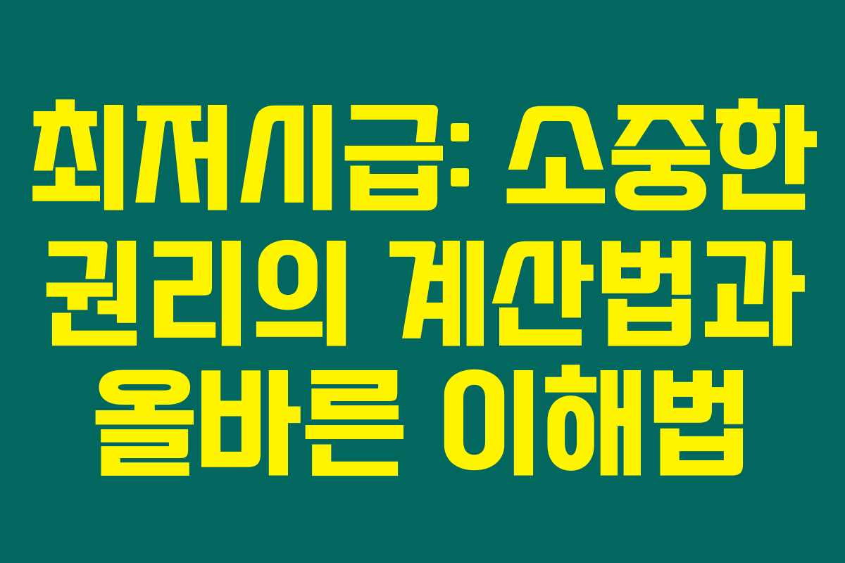 이번 글에서는 최저시급과 함께 최저임금의 계산방법, 월급 및 연봉으로의 환산 방법, 주휴수당 지급 여부에 대해 상세하게 안내드릴게요. 제가 직접 체크해본 결과로는, 이러한 정보를 바탕으로 자신의 권리를 보다 명확히 이해하게 되길 바랍니다.