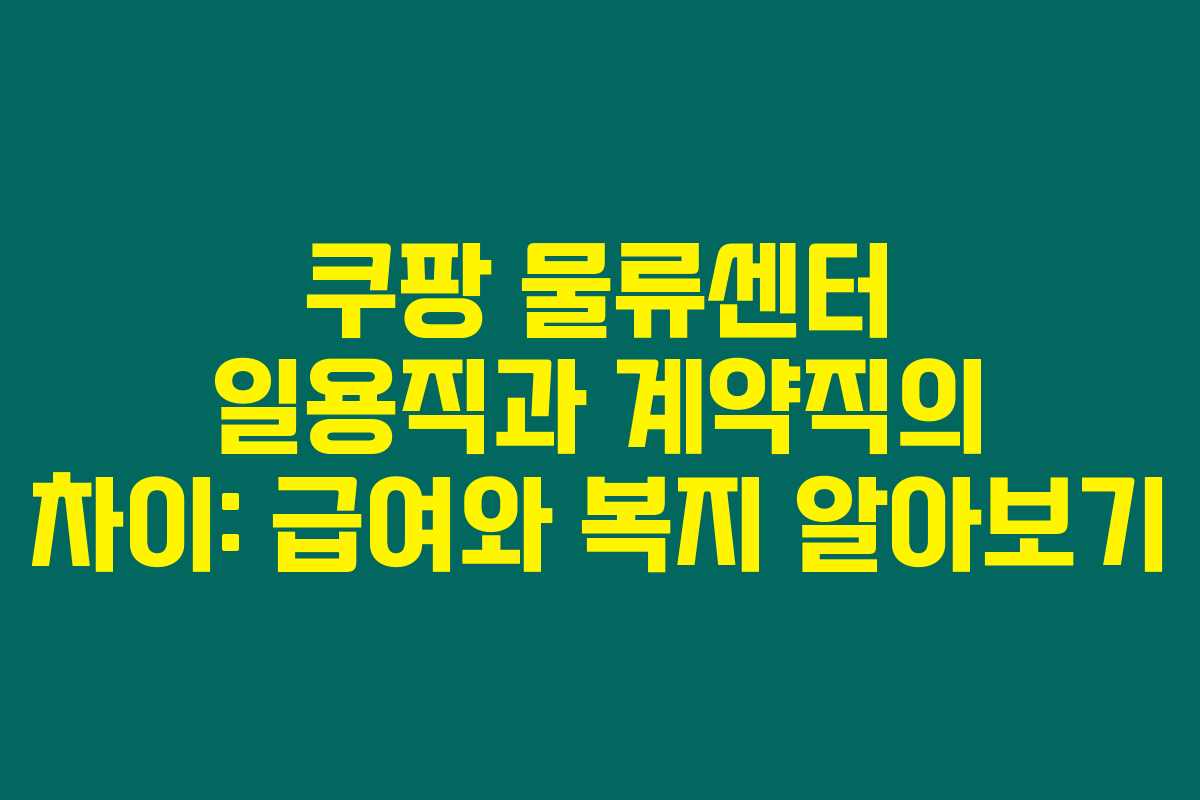 쿠팡 물류센터에서 일용직과 계약직은 서로 다른 근로조건과 혜택을 제공합니다. 이 글을 통해 두 가지 고용 형태의 근로 환경과 차이를 점검해 볼까요? 아래를 읽어보시면 어떤 선택이 나에게 맞는지 알게 될 거예요!