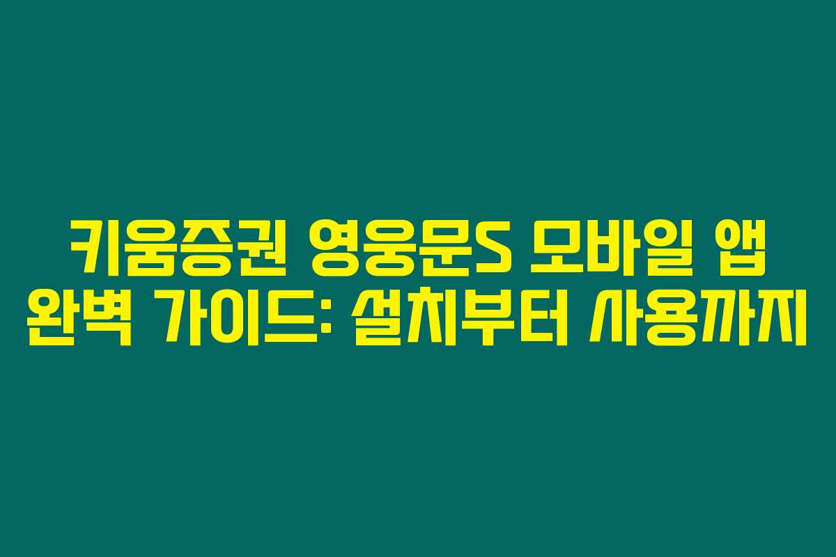 주식에 관심이 많으시다면 키움증권의 영웅문S 앱은 필수일 텐데요. 모바일로 언제 어디서나 쉽게 주식 거래를 할 수 있는 이 앱은 개인 투자자들에게 많은 사랑을 받고 있습니다. 혹시 처음 설치하는 것에 어려움을 느끼고 계시는 분들이라면, 바로 아래를 읽어보시면 영웅문S의 설치 및 사용 방법에 대한 구체적인 정보를 확인할 수 있답니다!