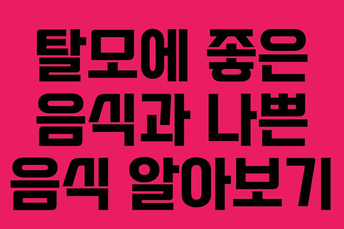 탈모는 많은 사람들이 고민하는 문제 중 하나입니다. 이를 예방하고 치료하기 위해서는 어떤 음식을 먹고 어떤 음식을 피해야 하는지 아는 것이 중요합니다. 이번 글에서는 탈모에 나쁜 음식과 좋은 음식을 알아보고, 탈모 치료 방법에 대해서도 살펴보겠습니다.