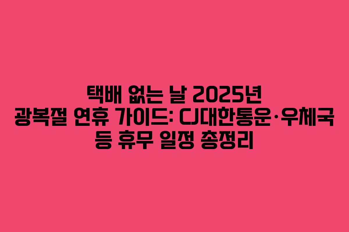 아래를 읽어보시면 2025년 광복절 연휴에 맞춘 택배 없는 날 휴무 일정과 각 택배사별 배송 중단 기간을 한눈에 확인하고, 로켓배송·편의점 택배의 운영 여부와 돌발 상황에 대비한 실전 팁까지 얻을 수 있습니다.