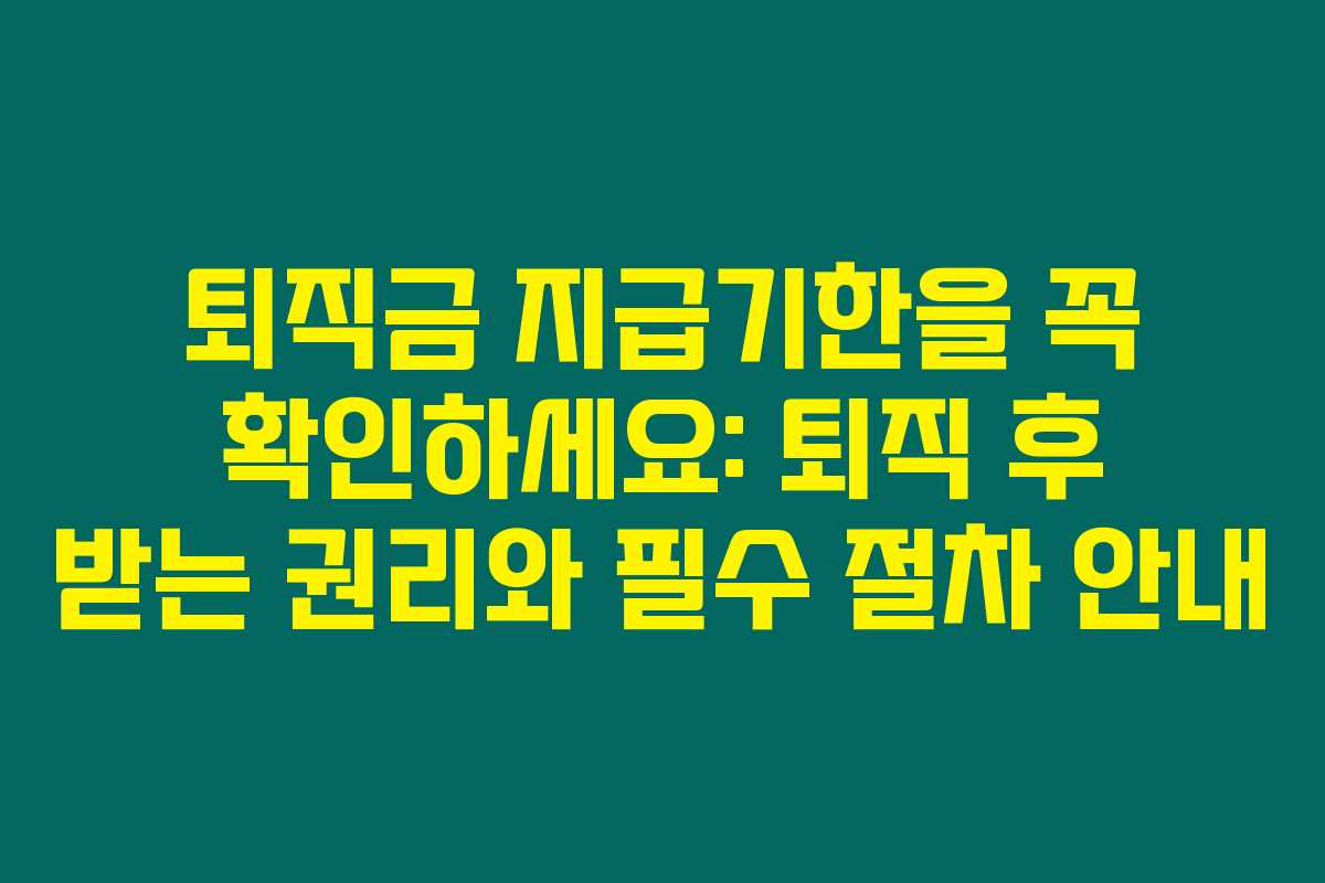 퇴직금 지급기한은 직장생활의 중요한 요소니까, 이를 정확히 이해하고 대처하는 것이 정말 중요해요. 퇴직금 이슈가 생길 경우에는 법적 조치를 통해 권리를 주장 해야 하는데요. 여러분의 소중한 권리를 지키기 위해 항상 최신 정보를 체크해보세요!
