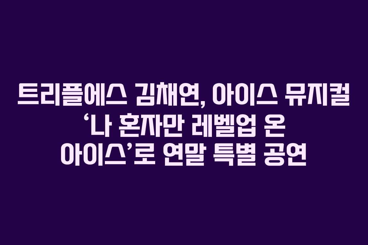 트리플에스의 김채연이 오는 12월 24일부터 31일까지 서울 양천구 목동 아이스링크에서 특별한 아이스 뮤지컬 ‘나 혼자만 레벨업 온 아이스’(이하 ‘나혼렙 온 아이스’)로 팬들과 만날 예정입니다. 이번 공연은 팬들에게 소중한 연말 선물이 될 것으로 기대됩니다.
