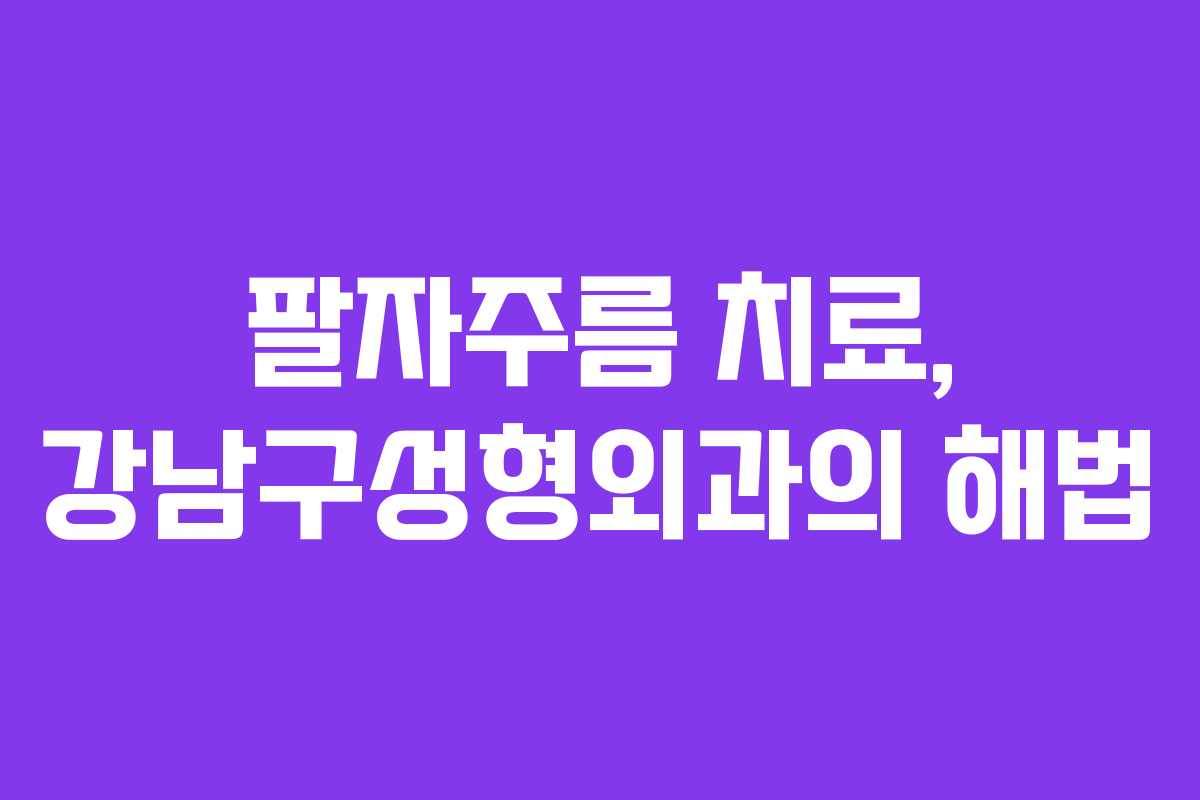 팔자주름으로 고민하고 계신다면, 강남구성형외과를 방문하셔서 상담을 받아보시길 추천드립니다. 전문의와의 상담을 통해 최적의 치료 방법을 찾을 수 있습니다.