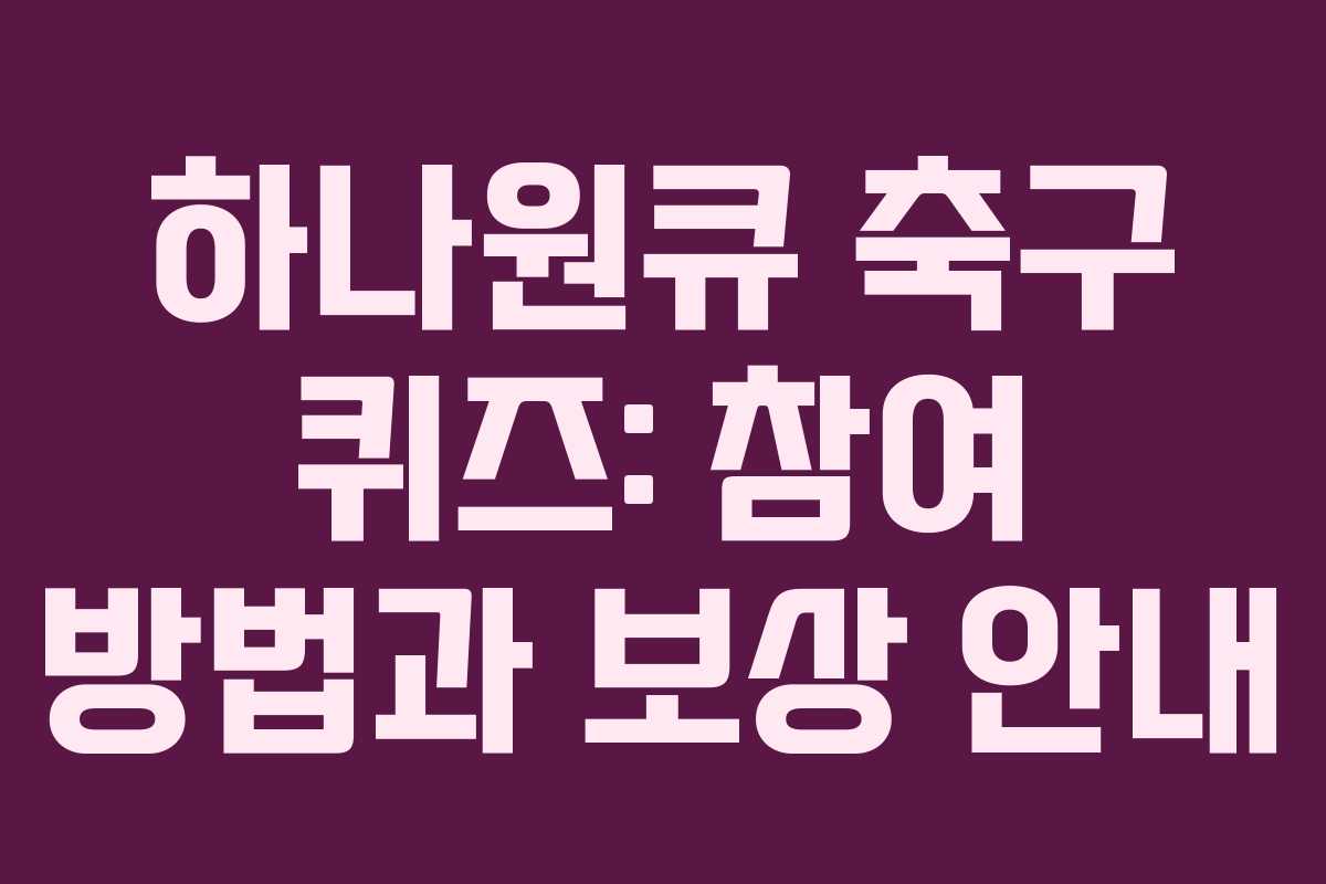 하나원큐 축구 퀴즈는 축구 팬들에게 매일 출제되는 문제를 통해 즐거움을 제공하는 이벤트입니다. 참여자들은 퀴즈에 정답을 입력함으로써 보상을 받을 수 있으며, 특히 정답을 빠르게 입력할 경우 추가 혜택도 받을 수 있습니다.