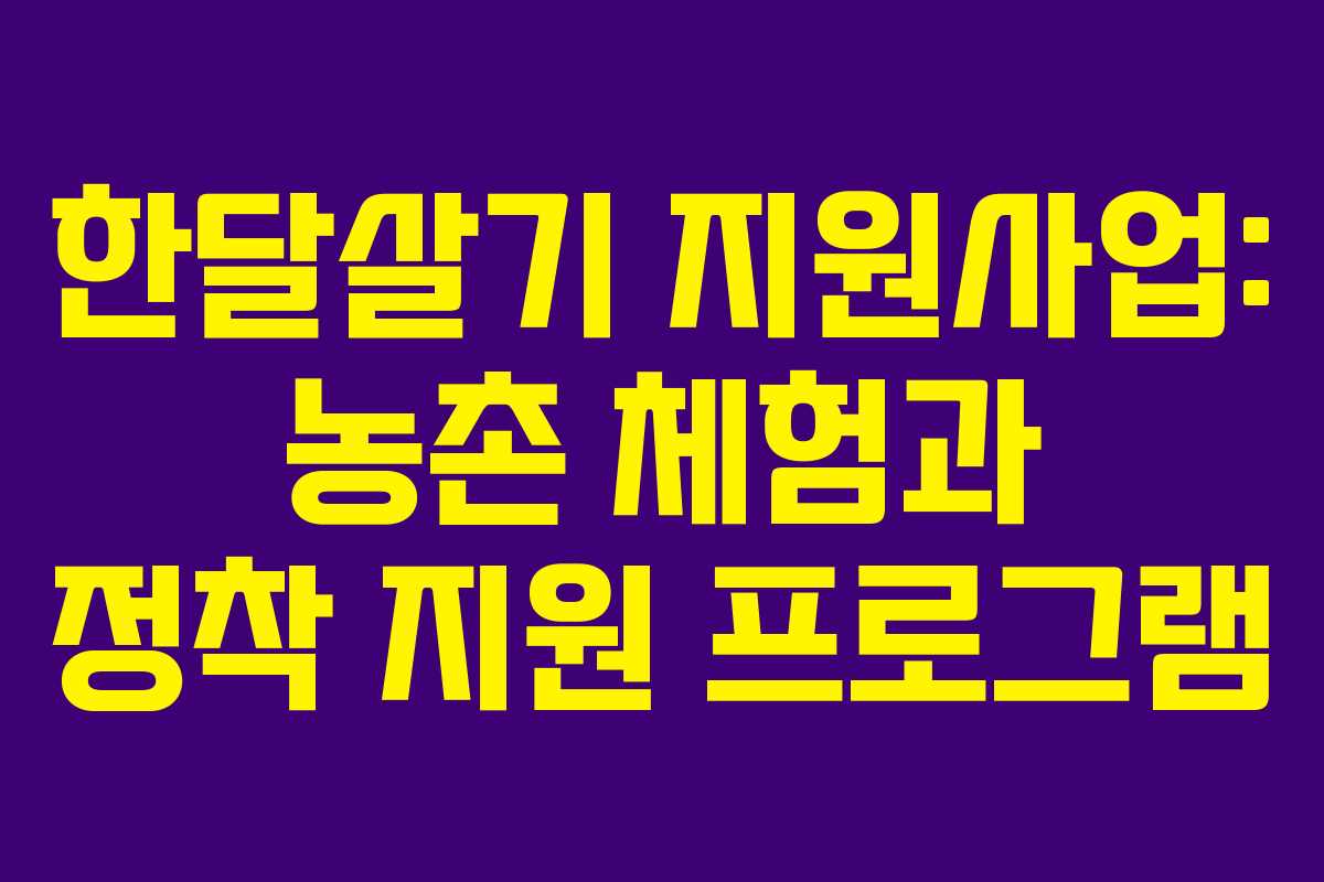 한달살기 지원사업은 귀농귀촌을 희망하는 도시민에게 농촌에서 직접 거주하며 농촌 생활과 일자리를 체험할 기회를 제공하는 프로그램입니다. 이 사업은 도시민이 농촌에 성공적으로 정착할 수 있도록 돕고, 농촌 지역의 인구 문제를 해결하기 위한 목적도 가지고 있습니다.