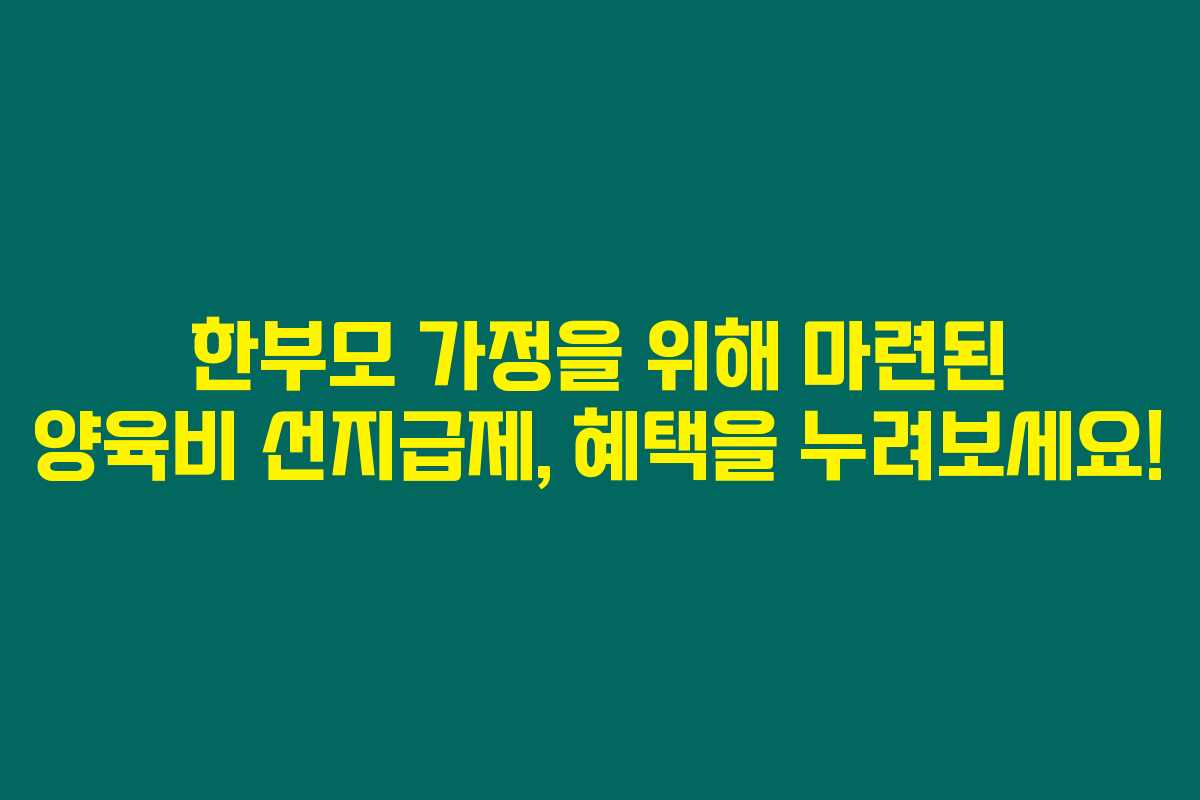 한부모 가정의 삶은 다양한 어려움이 있지만, 정부의 양육비 선지급제는 그 부담을 조금이나마 덜어줄 수 있는 좋은 기회입니다. 이 제도를 통해 자녀들이 보다 건강하게 성장할 수 있도록 지원받는 것이 정말 중요하죠. 제가 알아본 바로는, 많은 한부모 가정이 이 제도의 혜택을 통해 안정된 생활을 할 수 있으니, 꼭 신청해 보시기를 추천합니다.