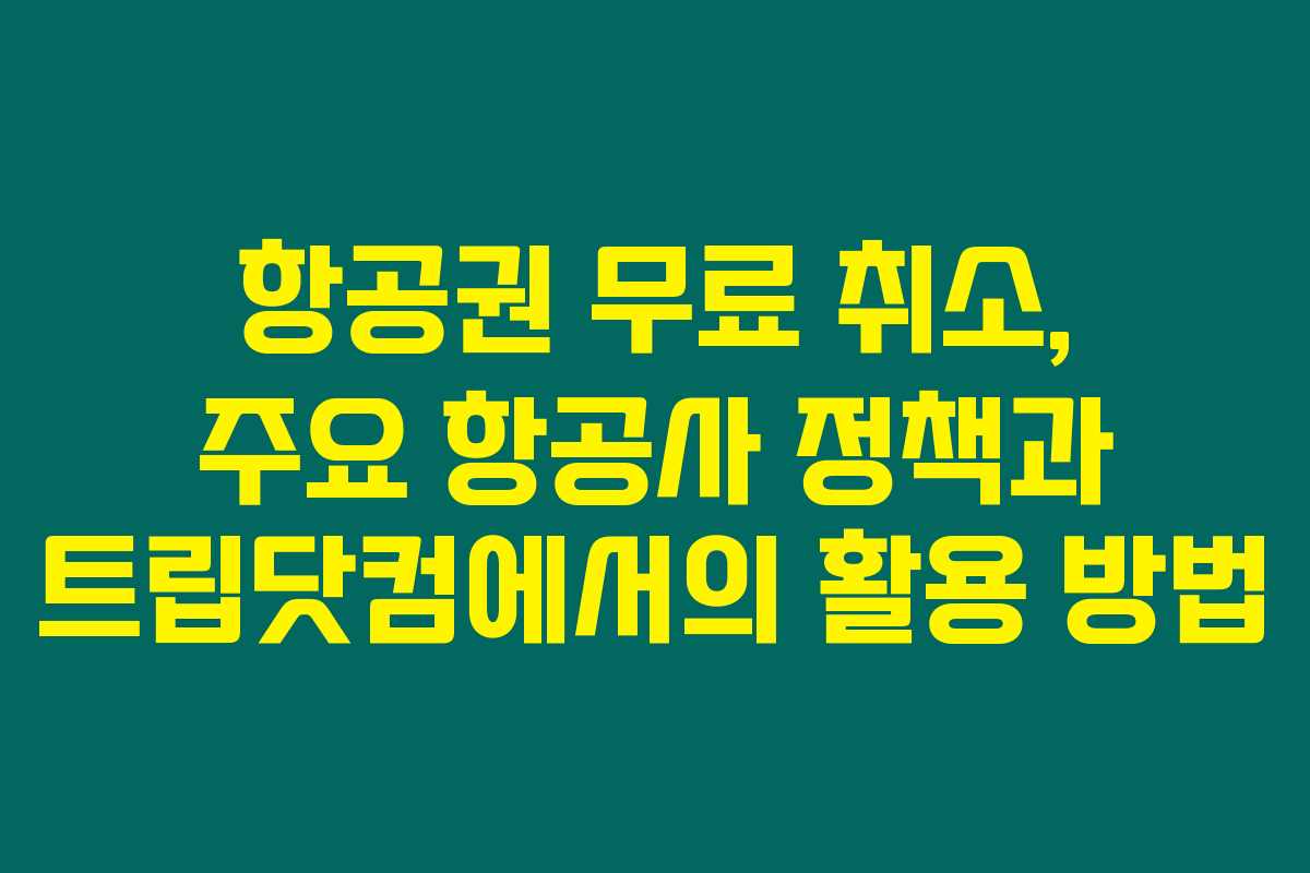 항공권 무료 취소 정책은 항공사를 선택할 때 중요한 요소가 될 수 있습니다. 이를 통해 여행 계획의 유연성을 확보할 수 있지요. 한국의 주요 항공사들이 제공하는 무료 취소 정책에 대해 살펴보겠습니다.