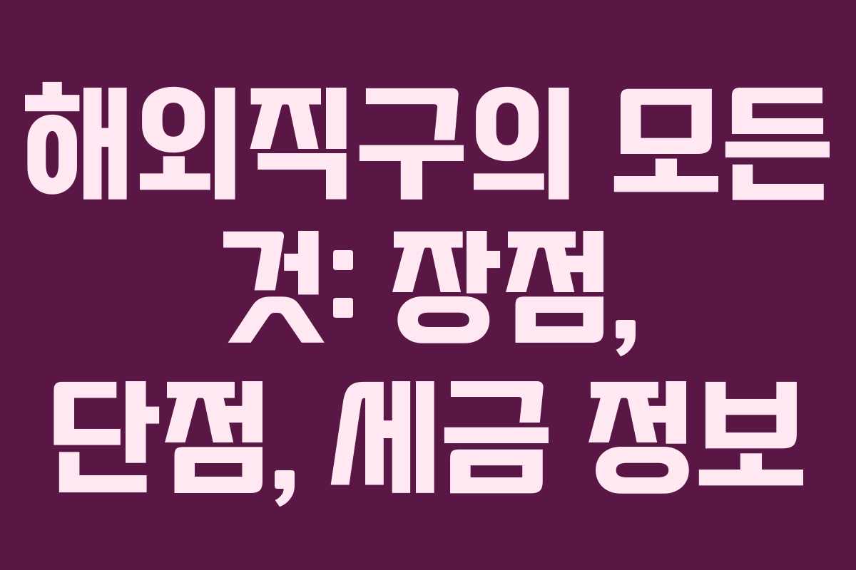 해외직구는 국내 소비자가 해외 온라인 쇼핑몰을 통해 상품을 직접 구매하는 방법으로, 많은 이들이 이를 통해 다양한 상품을 저렴하게 구입하고 있습니다. 그러나 장점과 단점을 모두 고려해야 합니다.