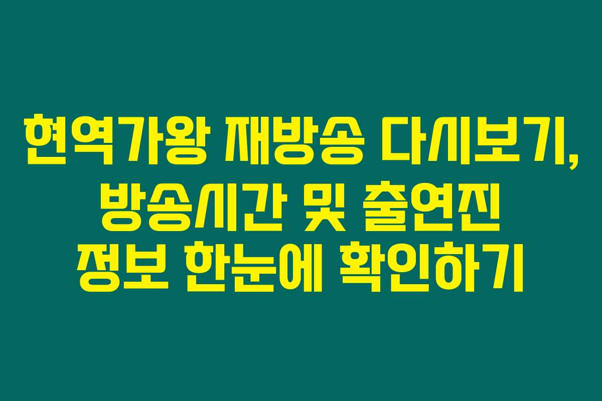 현역가왕을 기다리시는 분들 많을 텐데 너무 아쉬운 말씀 드리지만 재방송이나 다시 보기 방법을 모르고 계시다면 정말 손해를 보고 계신 걸지도 몰라요. 현역가왕 재방송 다시보기를 원하시거나 방송시간과 출연진에 대한 정보를 알고 싶다면 아래를 꼭 읽어보세요. 최신 정보를 담아 준비했어요!