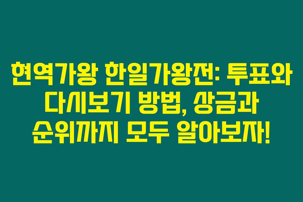 현역가왕 한일가왕전, 드디어 기다리던 방송이 다가옵니다! 이 흥미로운 대결에 대한 모든 정보, 투표 방법과 재방송을 포함한 다시보기 방법까지 모두 안내해 드릴게요. 아래를 읽어보시면 이 프로그램의 매력에 푹 빠지실 거예요!