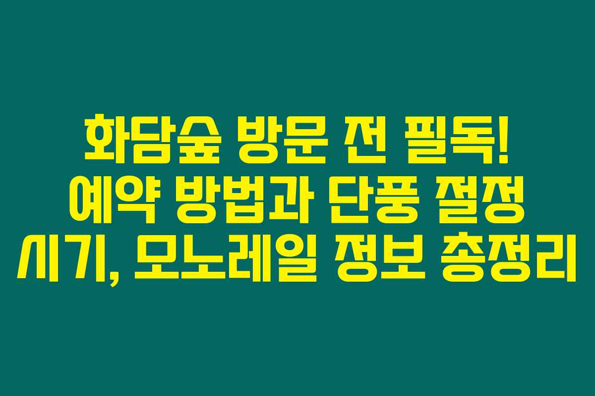 경기도 광주시의 아름다운 화담숲은 가을이 되면 단풍으로 물드는 환상적인 자연경관으로 많은 관광객을 매료시키는 명소입니다. 아래를 읽어보시면 화담숲 예약 방법, 단풍 절정 시기, 모노레일에 대한 유용한 정보를 모두 확인할 수 있습니다.
