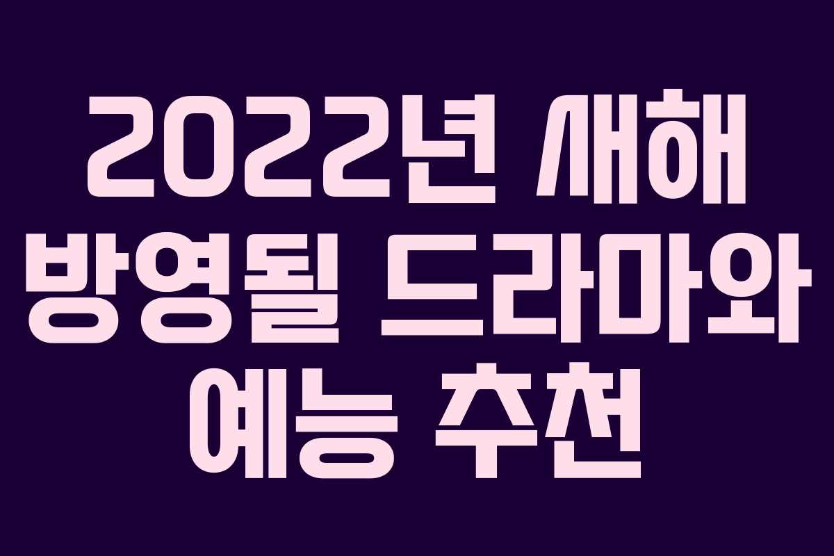 2022년이 밝았습니다! 새해를 맞이하여 다양한 드라마와 예능 프로그램들이 시청자들을 기다리고 있습니다. 이번 포스팅에서는 1월에 방영되는 추천 드라마와 예능 라인업을 소개합니다.