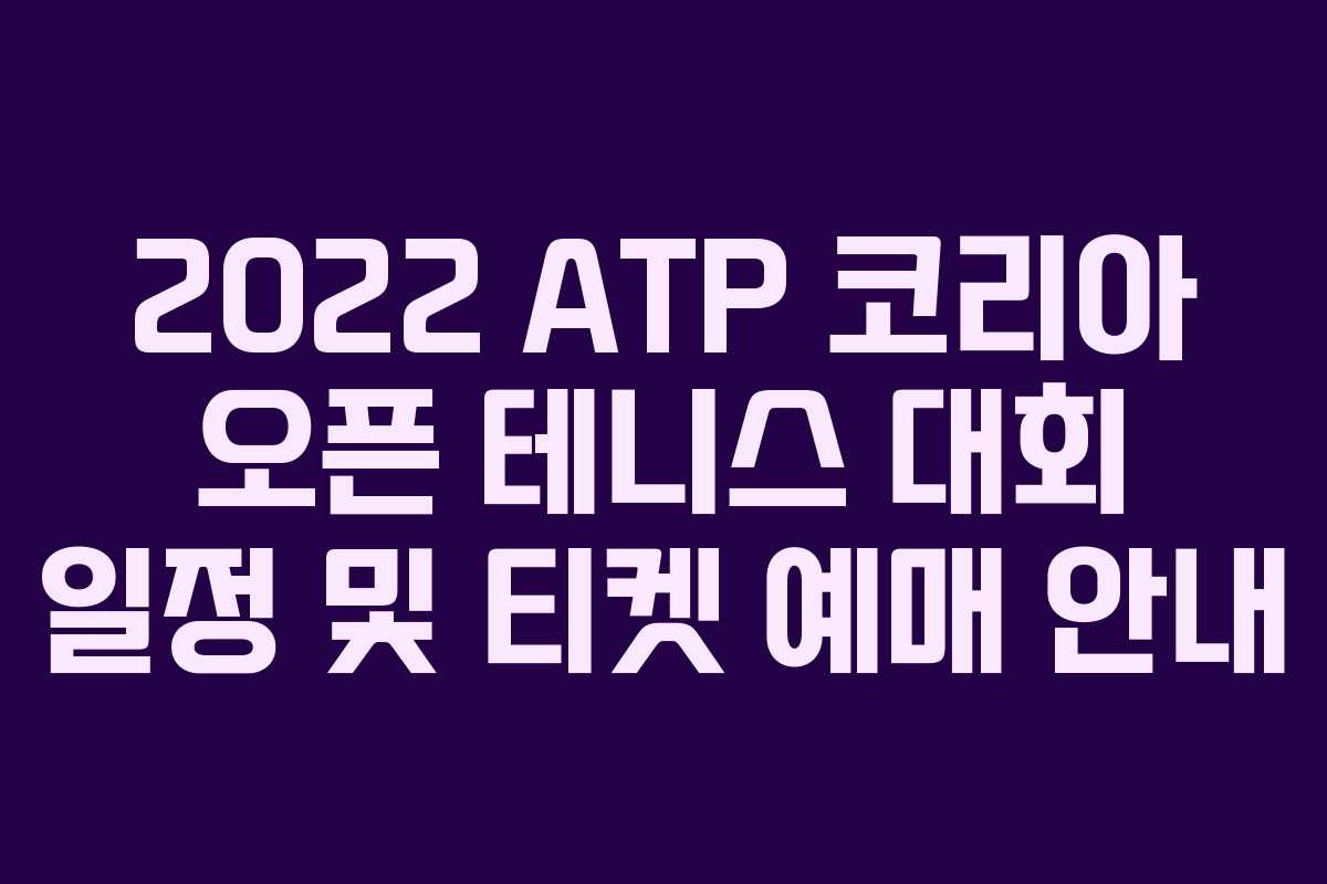 2022 ATP 코리아 오픈 테니스 대회 일정 및 티켓 예매 안내