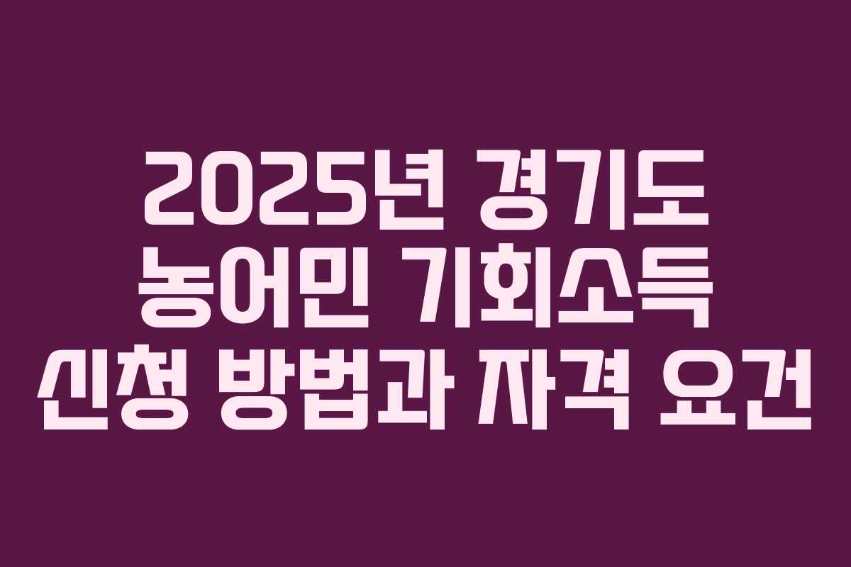 - 신청 대상: 경기도 거주 + 농어업 1년 이상 + 농외소득 3,700만 원 미만