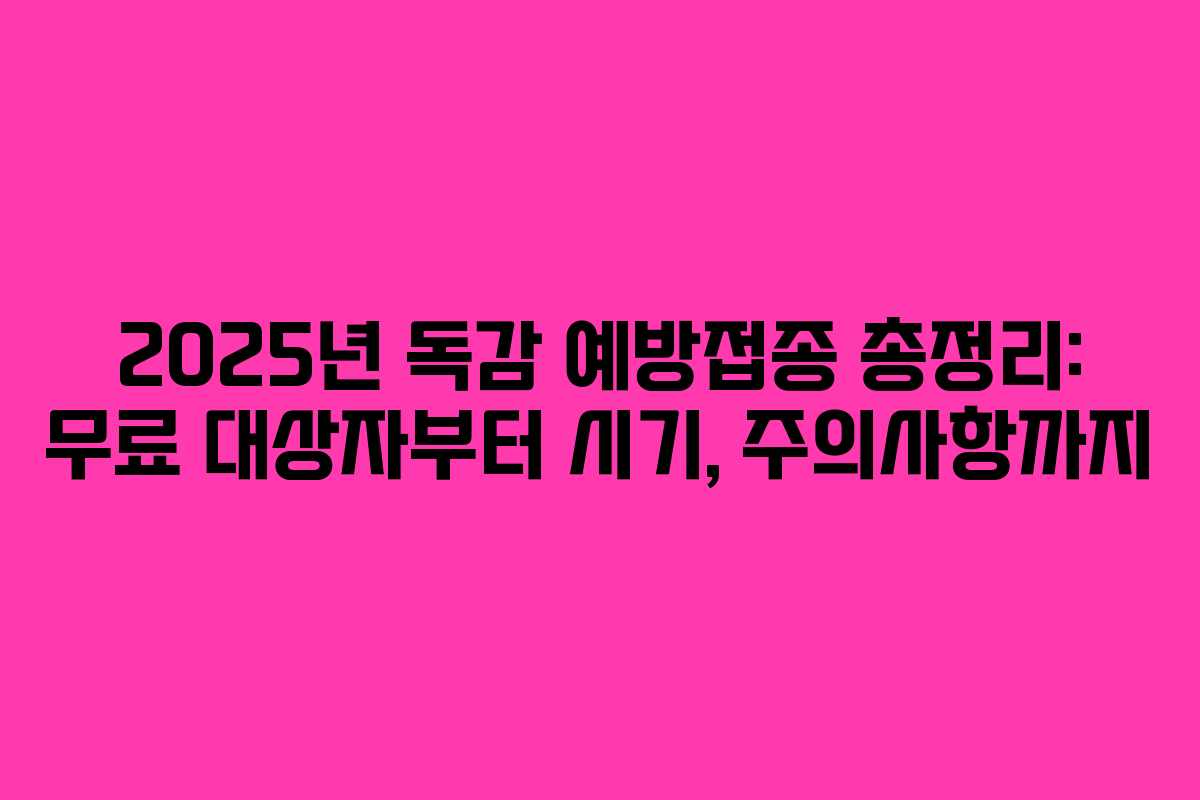 2025년 독감 예방접종 총정리: 무료 대상자부터 시기, 주의사항까지