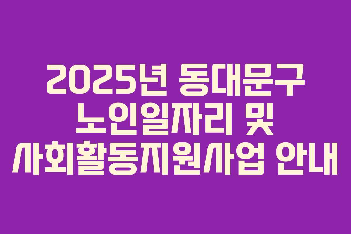 2025년 동대문구에서는 노인들이 활기차고 건강한 노후생활을 누릴 수 있도록 다양한 노인일자리 및 사회활동지원사업에 참여자를 모집합니다. 본 프로그램은 다양한 분야에서 노인들이 사회에 기여하고, 동시에 경제적 지원을 받을 수 있는 기회를 제공합니다.