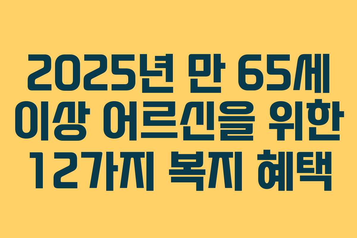 2025년 대한민국은 초고령화 사회로 진입하면서 만 65세 이상 인구가 증가할 것으로 예상됩니다. 이에 따라 노년층을 위한 다양한 복지 혜택이 마련되어 있습니다. 이번 글에서는 만 65세 이상 어르신들이 받을 수 있는 12가지 복지 혜택을 자세히 알아보겠습니다.